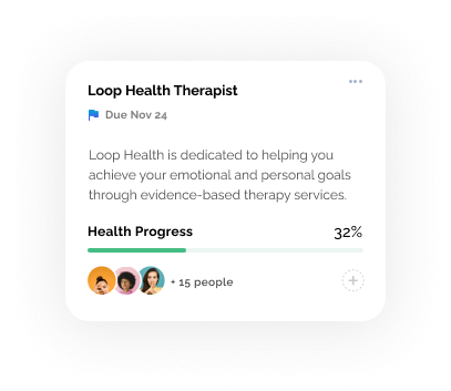 Along with our therapist matching service, Loop Health is a treasure trove of information, ideas, exercises, interactive tools, articles, and more designed to help you support your own mental health journey. Sign up for access to resources in the following areas: